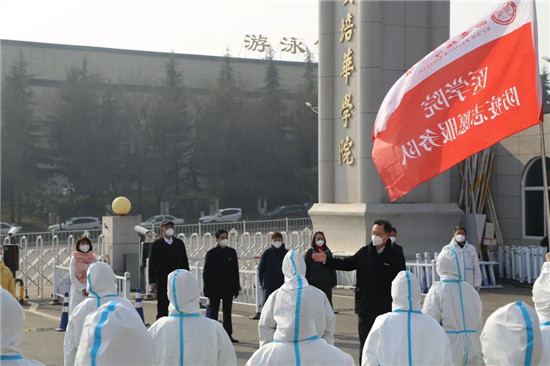 1月2日上午,长安区医院联合西安培华学院医院、医学院、后勤服务中心、信息中心等单位及部门的医护人员、党员干部共计80余人,组成了临时医疗突击队。队员们在西安培华学院医院院长李旭军的带领下,赴延大西安创新学院进行核酸采样,经过2小时的紧张工作,最终圆满完成采样任务。