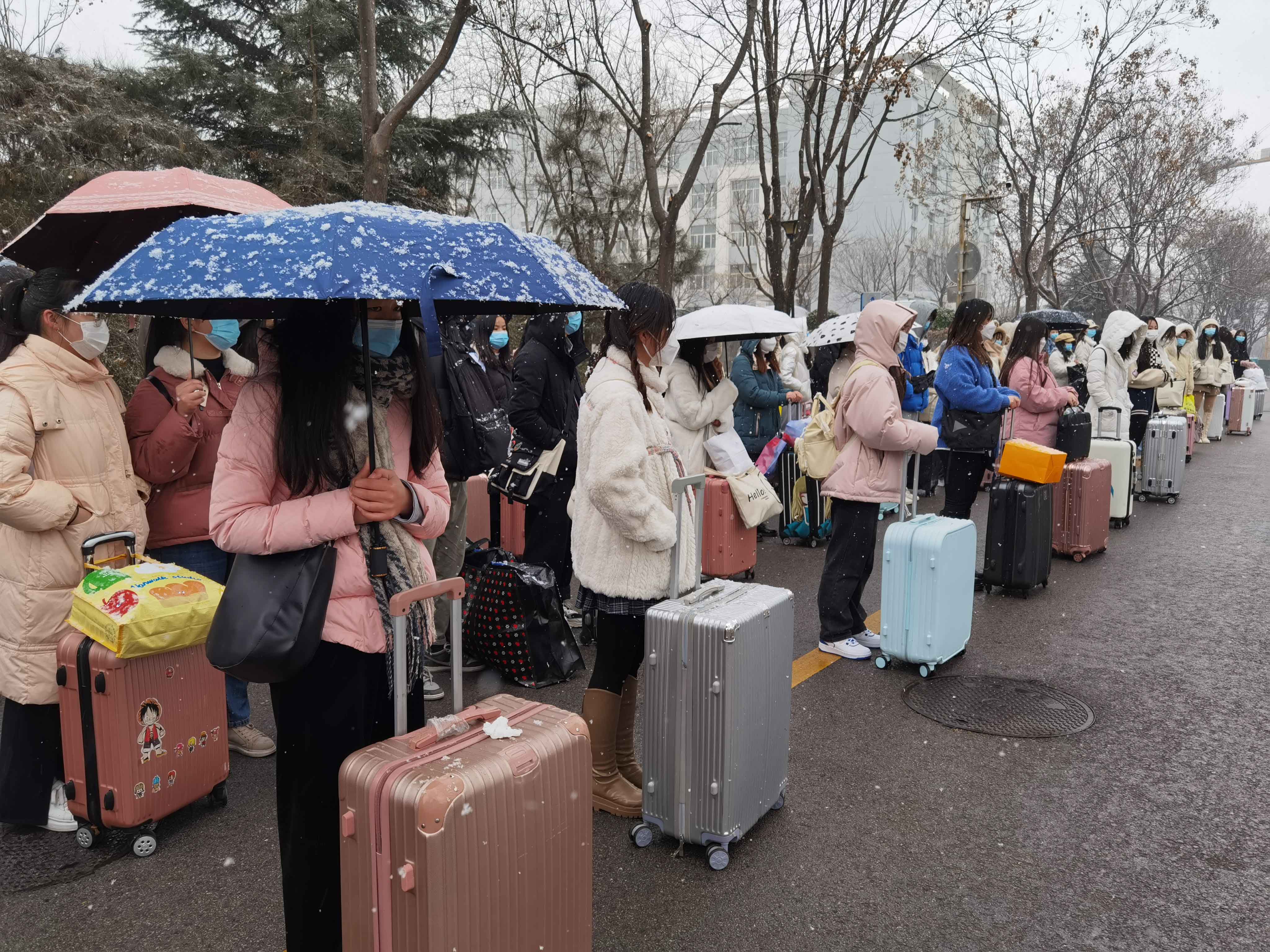 上午9时许,天空飘着鹅毛大雪,天气虽寒冷,却阻挡不了学生们归家的热情。为了确保学生能够安全返乡,学校全校动员,制定多重方案,尽最大可能为学生离校返乡提供便利条件和安全保障。