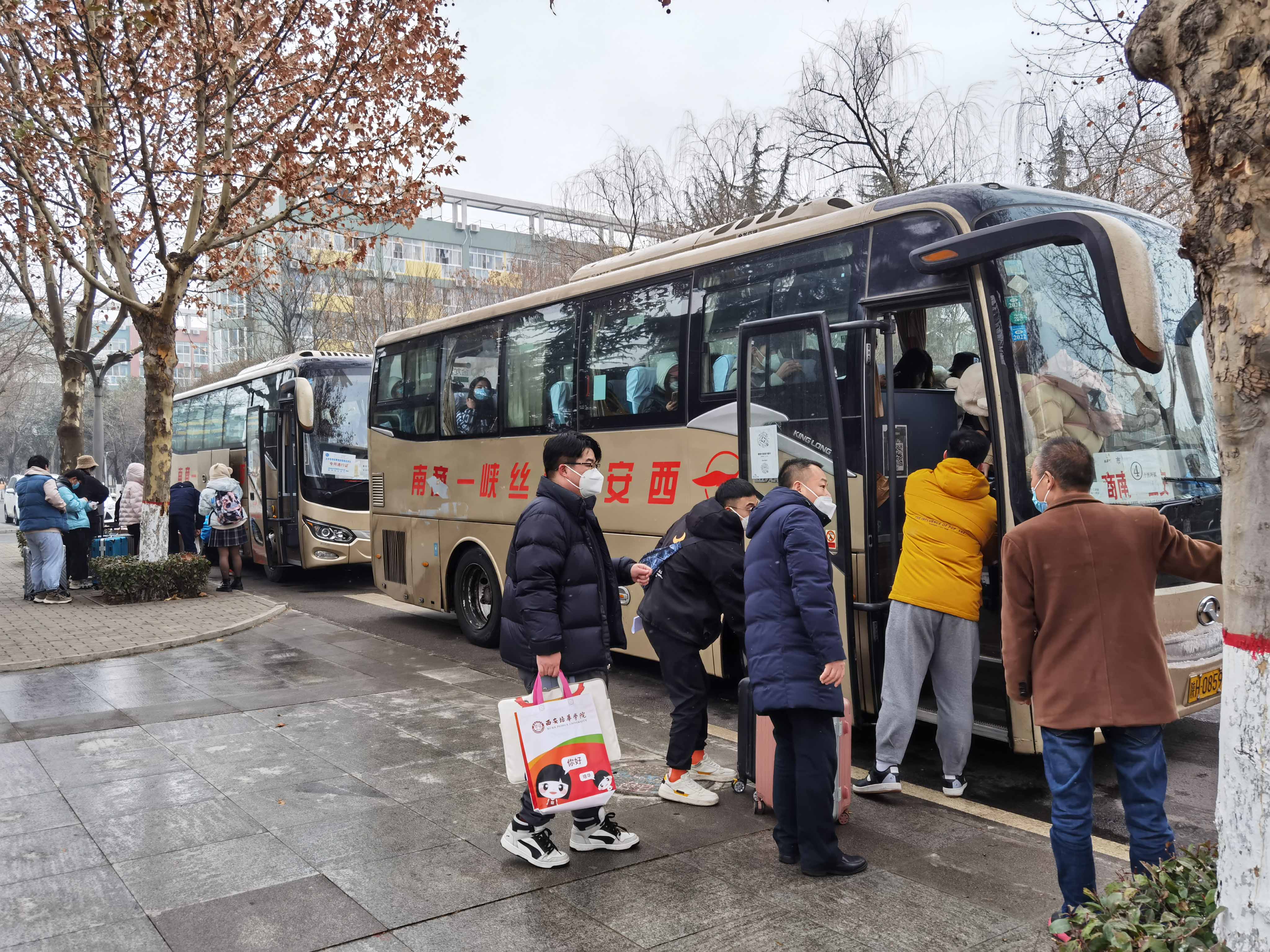 受疫情影响,我区20所高校都实施封闭管理,临近春节,部分高校省内学生也开始分批、错峰离校。1月21日,陕西学前师范学院长安校区和西安培华学院两所高校学生乘车离校返乡。