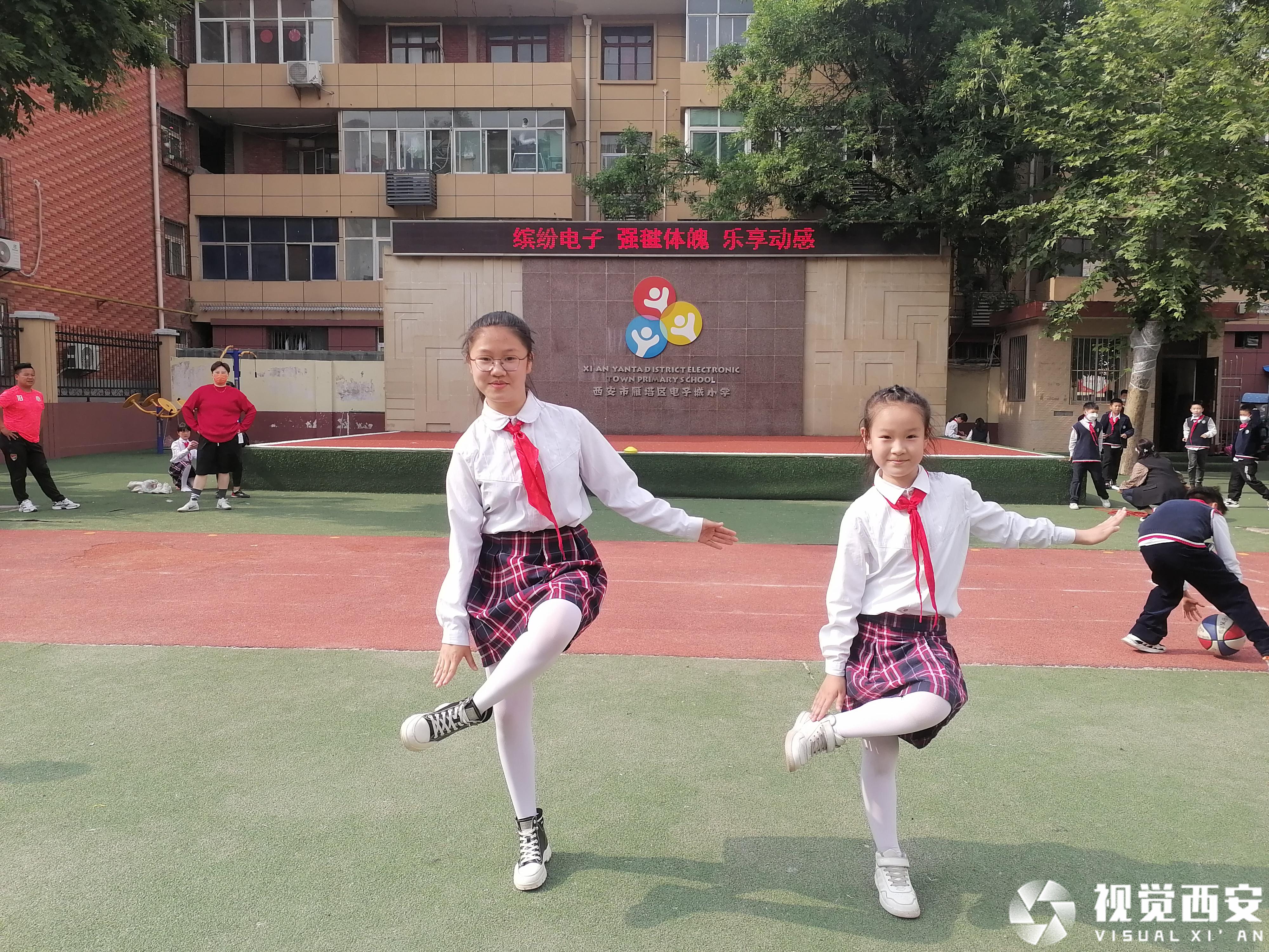 雁塔区电子城小学的孩子们很喜欢跳毽子操。