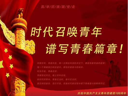 百年风雨兼程,一路筚路蓝缕,时间转瞬即逝,建团100周年。青年一代在爱国主义精神的引领下劈波斩浪、勇往直前,厚植爱国情怀,争当爱国主义的坚守者、弘扬者,西安培华学院青年要趁青春年华,迎着风雨和阳光奋力奔跑,以“青春之我”成就民族之梦想、国家之希望!