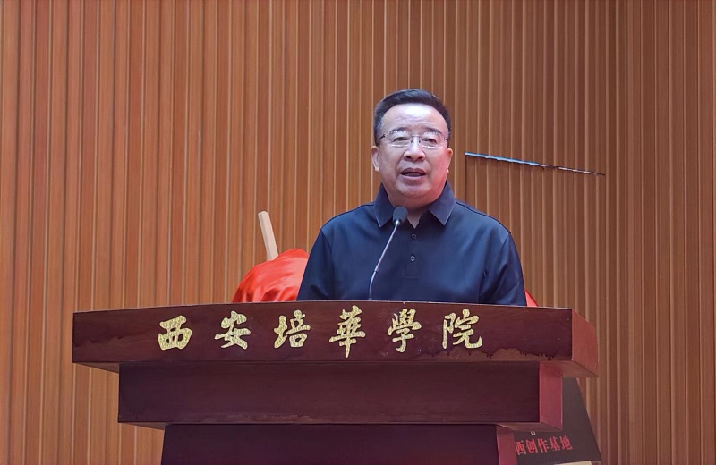 西安培华学院金融文化研究院院长赵晓舟发言。他说,西安培华学院金融文化研究院的成立,填补了中西部高校金融文化研究的空白,必将为清廉金融文化、普惠金融文化、绿色金融文化、科技金融文化、尤其金融企业文化建设的理论与实践创新起到积极推动和引领作用。他表示,研究院成立后,将依据《章程》,为中国金融发展战略服务;为一带一路金融文化创新服务;为各类金融机构金融文化建设服务;为提升陕西金融美誉和金融软实力服务,努力把金融文化研究院建成地方金融治理与金融文化建设的思想库、理论库、信息库、人才库、智囊库。