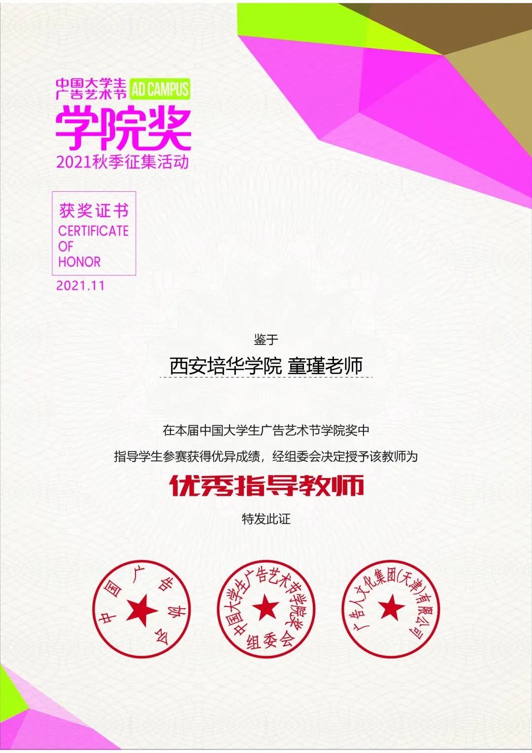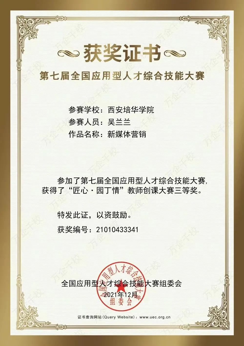 播音与主持艺术专业名列中国校友会《2017年播音与主持艺术专业高校排行榜》中国民办大学第三名,陕西民办大学第一名;校级一流本科专业。全国第四届中华职业教育创新创业大赛一等奖;第六届中国国际“互联网+”大学生创新创业大赛陕西赛区金奖兼最具人气奖;第十届“挑战杯”陕西省大学生创业计划竞赛金奖;丝路朗诵大赛一等奖。