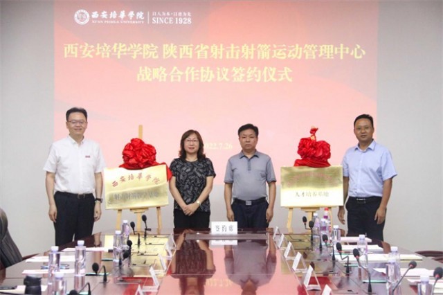 为进一步加强校政合作、增进产教融合,7月26日下午,西安培华学院与陕西省射击射箭运动管理中心举行战略合作协议签约仪式暨陕西省射击射箭运动管理中心人才培养基地、西安培华学院射击射箭教学基地揭牌仪式。