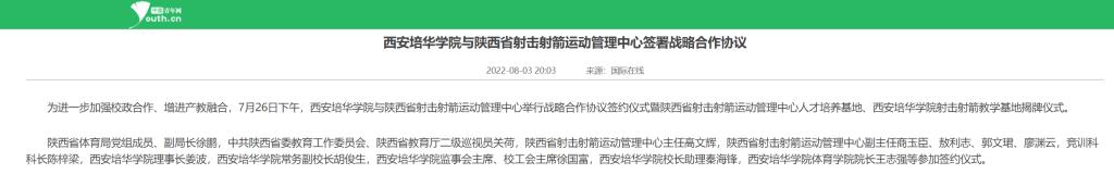 中国青年网:西安培华学院与陕西省射击射箭运动管理中心签署战略合作协议