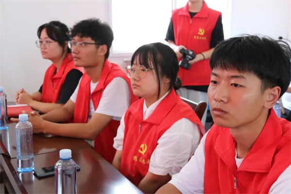 在交流结束后,双河口镇两委班子成员和校党委书记罗新远教授为我校“百年古镇行-传媒青年党员实践队”社会实践基地揭牌,并和实践队员们合影留念。