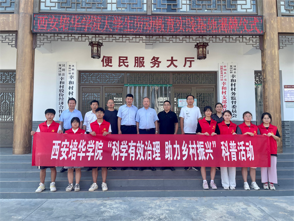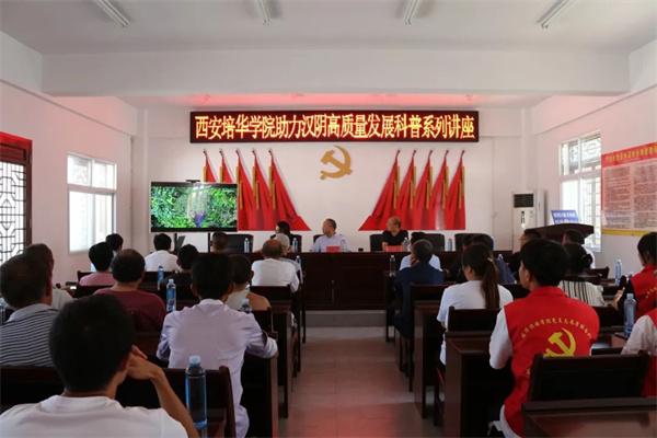 8月5日,西安培华学院赴汉阴县开展助力汉阴高质量发展“科学有效治理 助力乡村振兴”长安讲坛科普活动,西安培华学院党委书记、西安培华学院助力汉阴高质量发展课题组组长、陕西省乡村振兴专业研究会会长罗新远,团县委书记武进朝,汉阴县双河口镇纪委书记唐波,双河口镇副镇长,驻村工作队负责人李伟,校长办公室主任李健,校党委学工部部长蔡亮,团委书记杨媛,双河口镇幸和村两委会干部、村民代表及我校暑期“三下乡”社会实践队员代表,共计60人参加了此次科普活动。