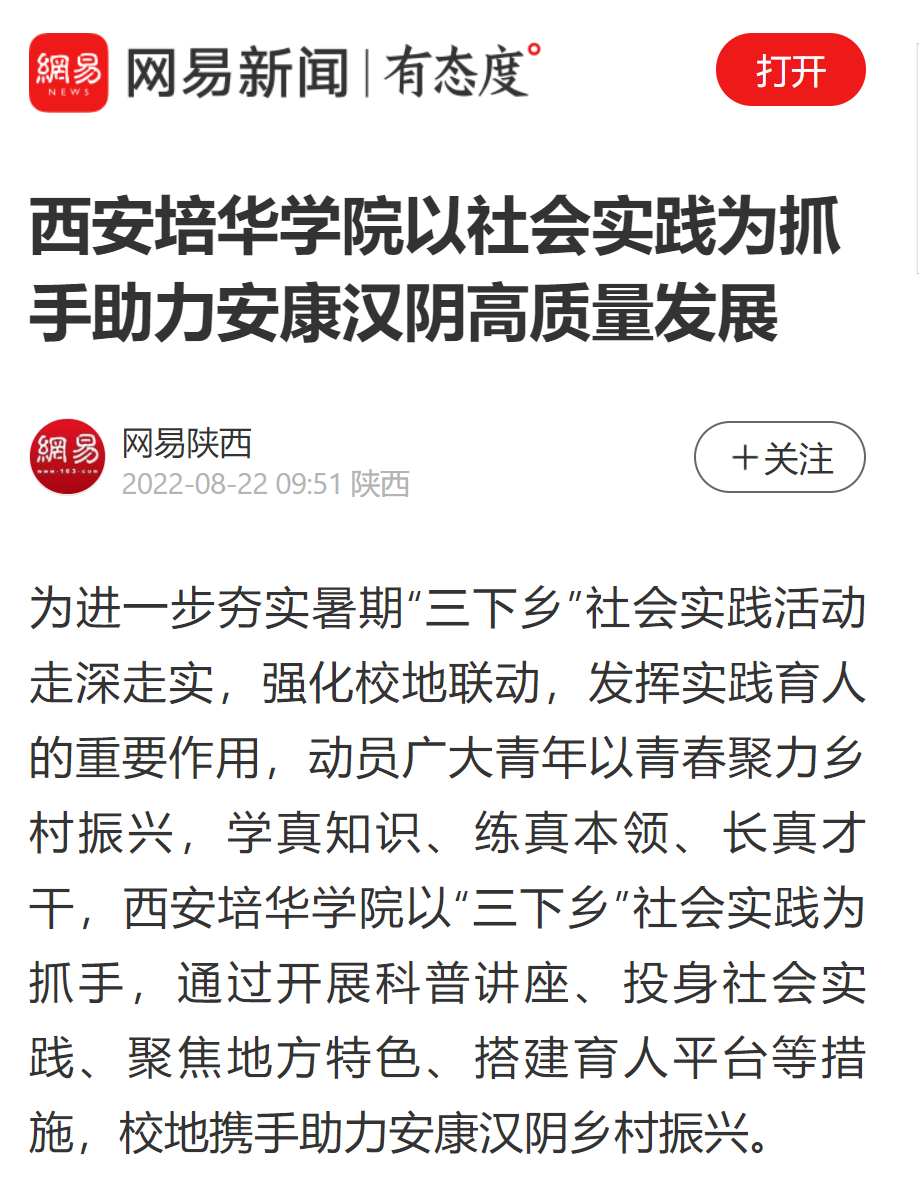 为进一步夯实暑期“三下乡”社会实践活动走深走实,强化校地联动,发挥实践育人的重要作用,动员广大青年以青春聚力乡村振兴,学真知识、练真本领、长真才干,西安培华学院以“三下乡”社会实践为抓手,通过开展科普讲座、投身社会实践、聚焦地方特色、搭建育人平台等措施,校地携手助力安康汉阴乡村振兴。