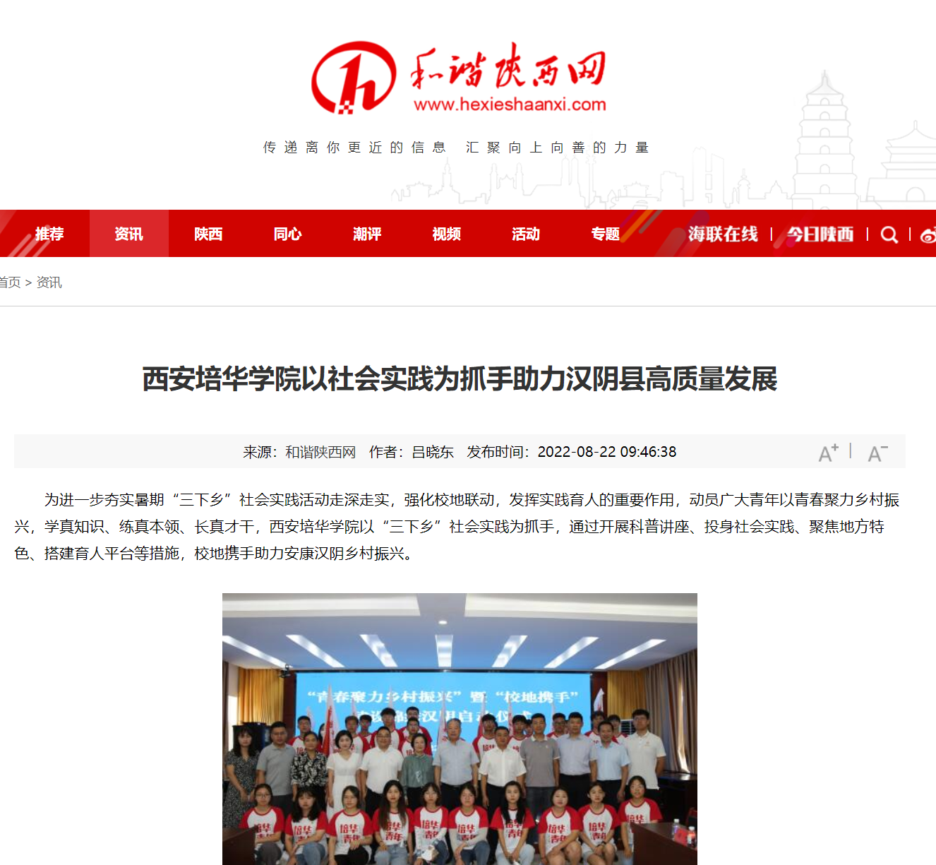 为进一步夯实暑期“三下乡”社会实践活动走深走实,强化校地联动,发挥实践育人的重要作用,动员广大青年以青春聚力乡村振兴,学真知识、练真本领、长真才干,西安培华学院以“三下乡”社会实践为抓手,通过开展科普讲座、投身社会实践、聚焦地方特色、搭建育人平台等措施,校地携手助力安康汉阴乡村振兴。