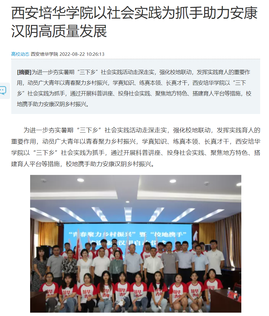 华商网:西安培华学院以社会实践为抓手助力安康汉阴高质量发展