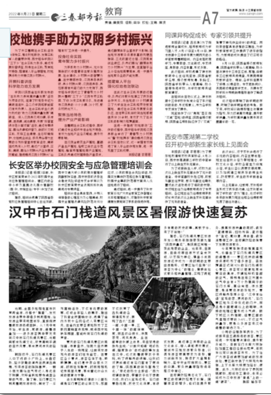 为了夯实暑期社会实践活动走深走实,强化校地联动,发挥实践育人的重要作用,西安培华学院以“三下乡”社会实践为抓手,通过开展科普讲座、投身社会实践、聚焦地方特色、搭建育人平台等措施,校地携手助力安康汉阴乡村振兴。