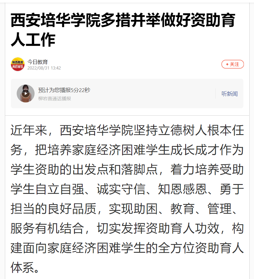 近年来,西安培华学院坚持立德树人根本任务,把培养家庭经济困难学生成长成才作为学生资助的出发点和落脚点,着力培养受助学生自立自强、诚实守信、知恩感恩、勇于担当的良好品质,实现助困、教育、管理、服务有机结合,切实发挥资助育人功效,构建面向家庭经济困难学生的全方位资助育人体系。