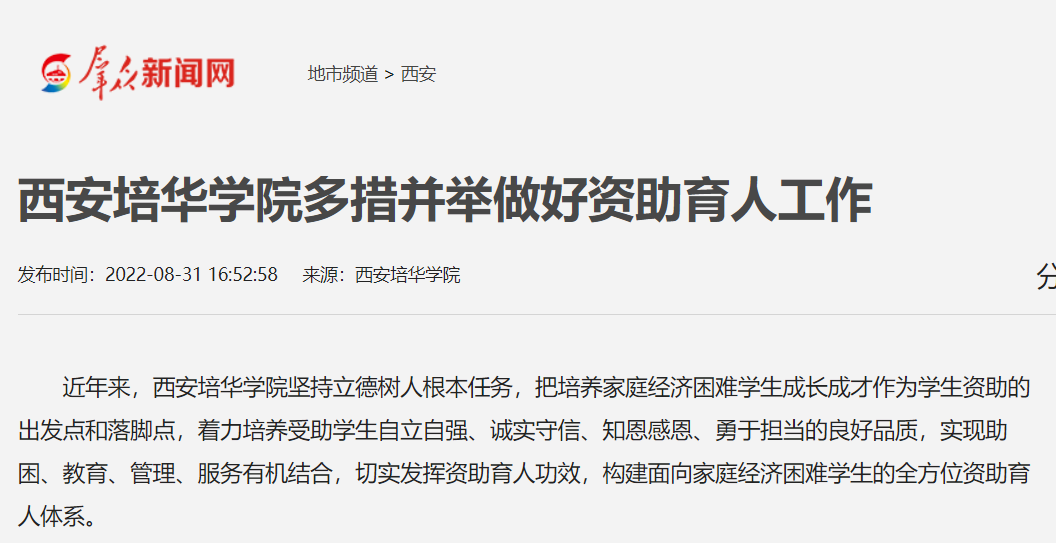 群众新闻网:西安培华学院多措并举做好资助育人工作
