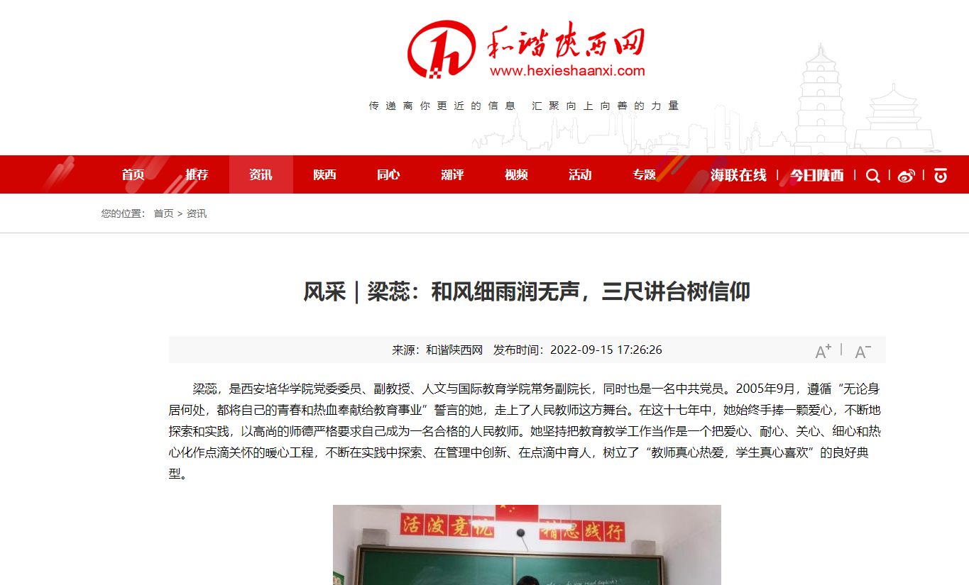 和谐陕西网:风采|梁蕊:和风细雨润无声,三尺讲台树信仰
