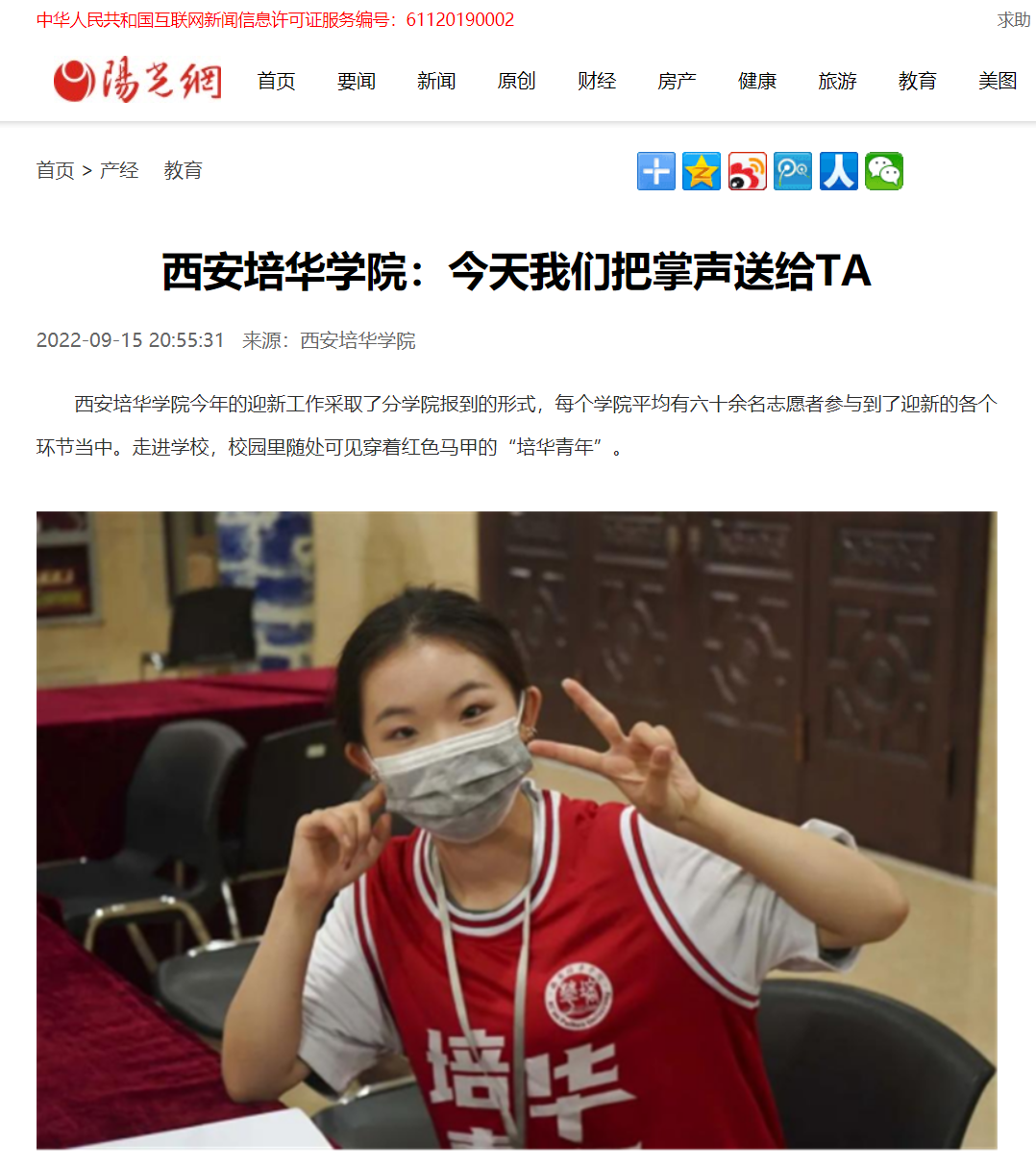 西安培华学院今年的迎新工作采取了分学院报到的形式,每个学院平均有六十余名志愿者参与到了迎新的各个环节当中。走进学校,校园里随处可见穿着红色马甲的“培华青年”。