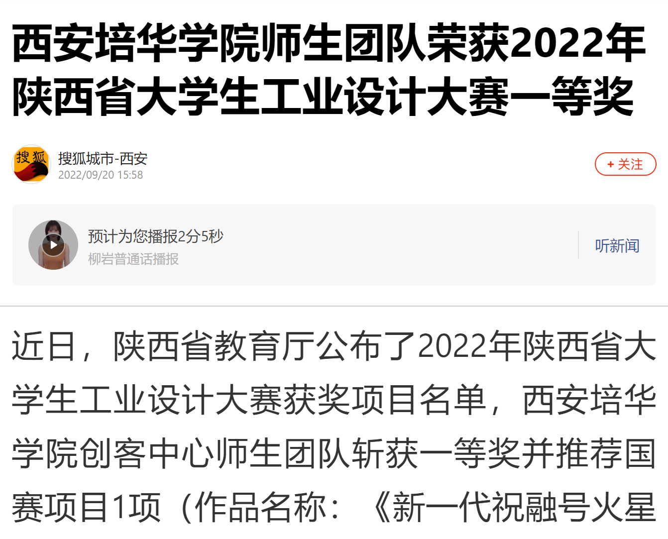 近日,陕西省教育厅公布了2022年陕西省大学生工业设计大赛获奖项目名单,西安培华学院创客中心师生团队斩获一等奖并推荐国赛项目1项(作品名称:《新一代祝融号火星探测车》,学生:蔺欣怡、朱家卉、王鹏、李思楠、李炎锦),二等奖1项(作品名称:《赤焰金猊HQ22F多管火箭炮》,学生:蔺欣怡、朱家卉、王鹏、李炎锦、李思楠),西安培华学院教师王子健、王旭东,以及企业导师乔木、曹旭钊等获优秀指导教师,取得学校在该项赛事上的历史最好成绩。