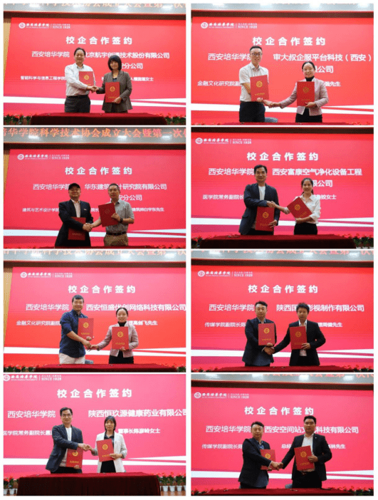 会议现场,学校相关学院与来访的多家企业方代表共同签署了一系列产学研合作框架协议。