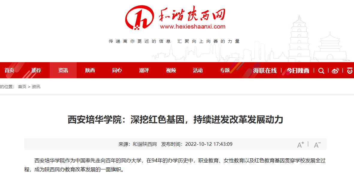 西安培华学院作为中国率先走向百年的民办大学,在94年的办学历史中,职业教育、女性教育以及红色教育基因贯穿学校发展全过程,成为陕西民办教育改革发展的一面旗帜。