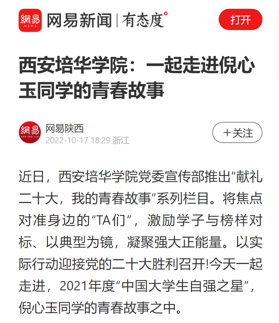 网易新闻:西安培华学院:一起走进倪心玉同学的青春故事