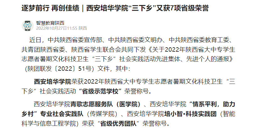 腾讯新闻:逐梦前行 再创佳绩|西安培华学院“三下乡”又获7项省级荣誉