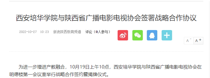 为进一步增进产教融合,10月19日上午10点,西安培华学院与陕西省广播电影电视协会在明德楼第一会议室举行战略合作签约暨揭牌仪式。