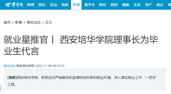 华商网:就业星推官丨 西安培华学院理事长为毕业生代言