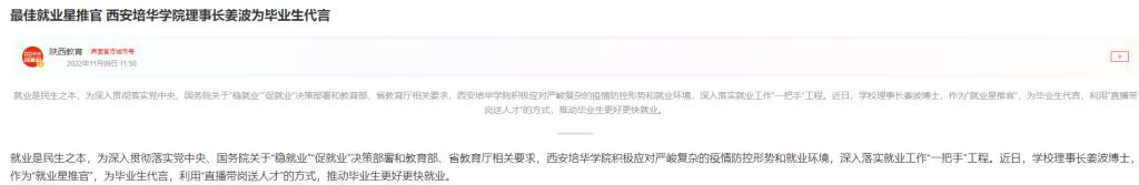 界面新闻:就业星推官丨 西安培华学院理事长为毕业生代言
