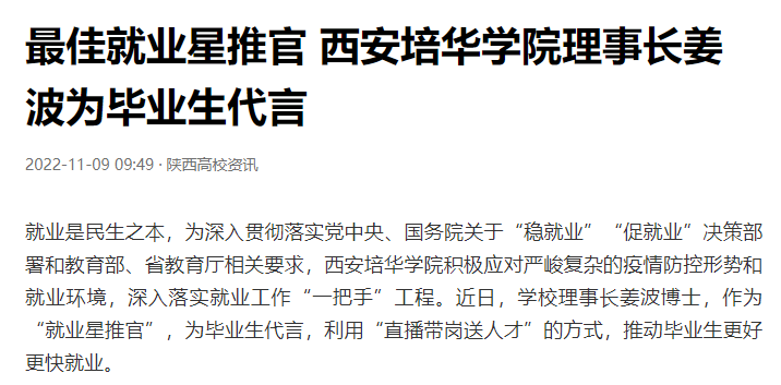 今日头条:就业星推官丨 西安培华学院理事长为毕业生代言