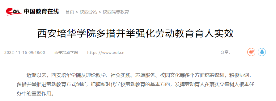 中国教育在线:西安培华学院多措并举强化劳动教育育人实效
