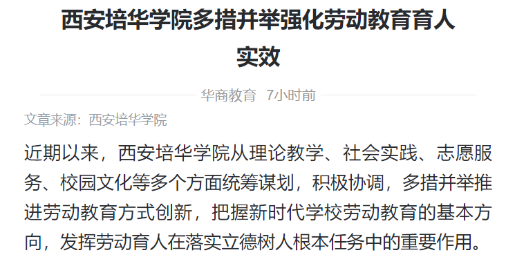 华商头条:西安培华学院多措并举强化劳动教育育人实效