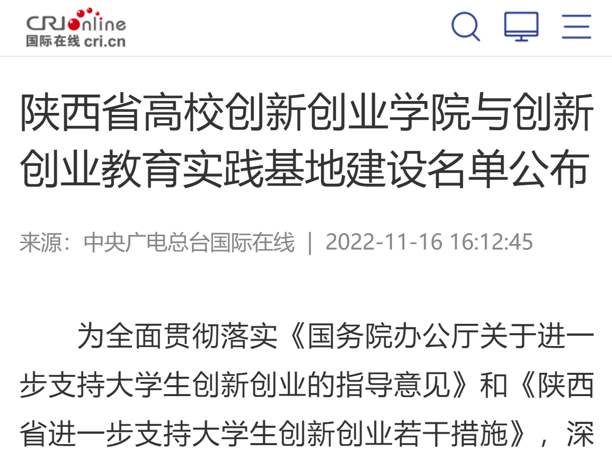为全面贯彻落实《国务院办公厅关于进一步支持大学生创新创业的指导意见》和《陕西省进一步支持大学生创新创业若干措施》,深化高等学校创新创业教育改革,陕西省教育厅根据《关于开展陕西省高等学校创新创业学院、创新创业教育实践基地建设工作的通知》有关要求,在高校自主申报、材料审查、专家评审和公示的基础上,认定西安交通大学等15所高校为陕西省高等学校创新创业学院建设单位,认定西北工业大学等15所高校为陕西省高等学校创新创业教育实践基地建设单位。