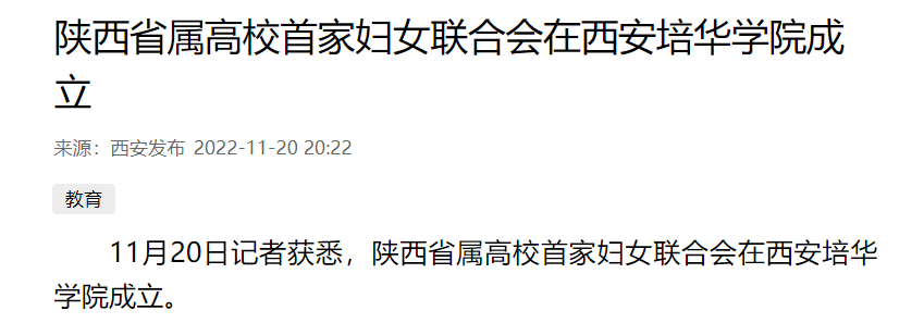 11月20日记者获悉,陕西省属高校首家妇女联合会在西安培华学院成立。