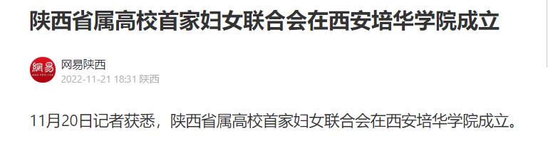 11月20日记者获悉,陕西省属高校首家妇女联合会在西安培华学院成立。