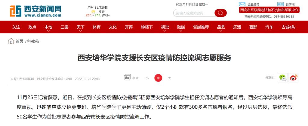 西安新闻网:西安培华学院青年驰援长安区疫情防控流调志愿服务工作