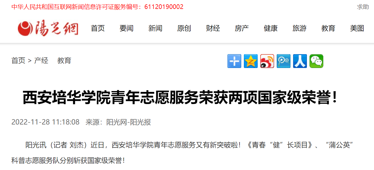 近日,西安培华学院青年志愿服务又有新突破啦!《青春“健”长项目》、“蒲公英”科普志愿服务队分别斩获国家级荣誉!