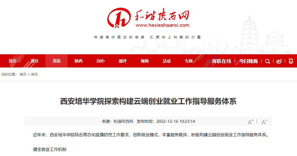 近年来,西安培华学院结合常态化疫情防控工作要求,创新就业模式,丰富服务载体,积极构建云端创业就业工作指导服务体系。