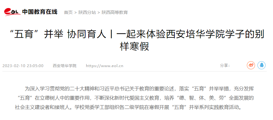 中国教育在线:“五育”并举 协同育人丨一起来体验培华学子的别样寒假~