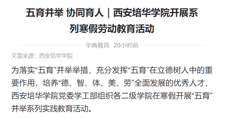 华商头条:“五育”并举 协同育人丨一起来体验培华学子的别样寒假~