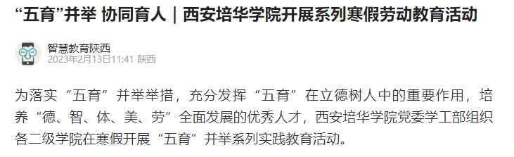 腾讯新闻:“五育”并举 协同育人|西安培华学院开展系列寒假劳动教育活动