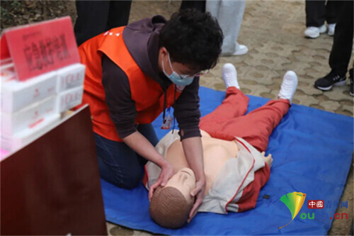 校红十字会的同学们详细讲解了心肺复苏术、气道异物梗阻等急救知识,并利用模拟人演示了心肺复苏、气道异物梗阻的操作方法和动作技巧,帮助大家掌握熟悉每一个操作环节,让现场社区居民充分意识到“黄金四分钟”的重要性。