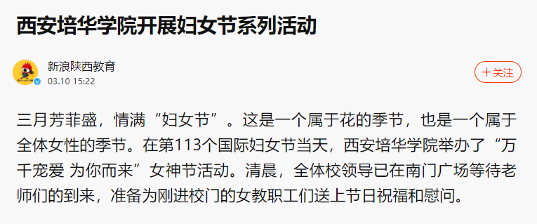 新浪新闻:西安培华学院开展妇女节系列活动