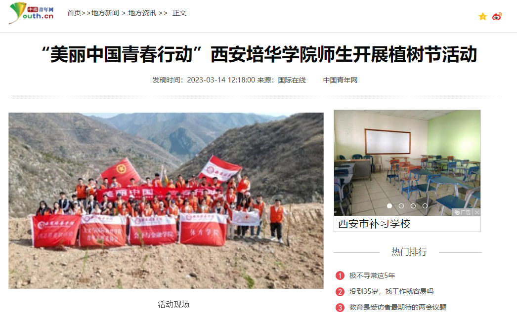 西安培华学院开展各种各样的植树、护树活动,以实际行动净化生态环境,奉献青春力量。(西安培华学院)