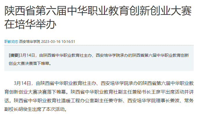 华商网:陕西省第六届中华职业教育创新创业大赛在培华举办