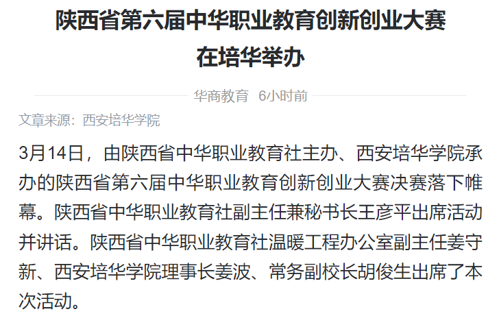 华商教育:陕西省第六届中华职业教育创新创业大赛在培华举办
