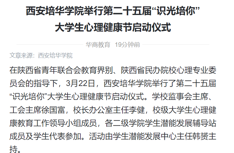 华商头条:西安培华学院举行第二十五届“识光培你”大学生心理健康节启动仪式