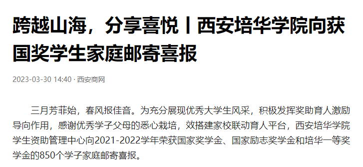 今日头条:跨越山海,分享喜悦丨西安培华学院向获国奖学生家庭邮寄喜报