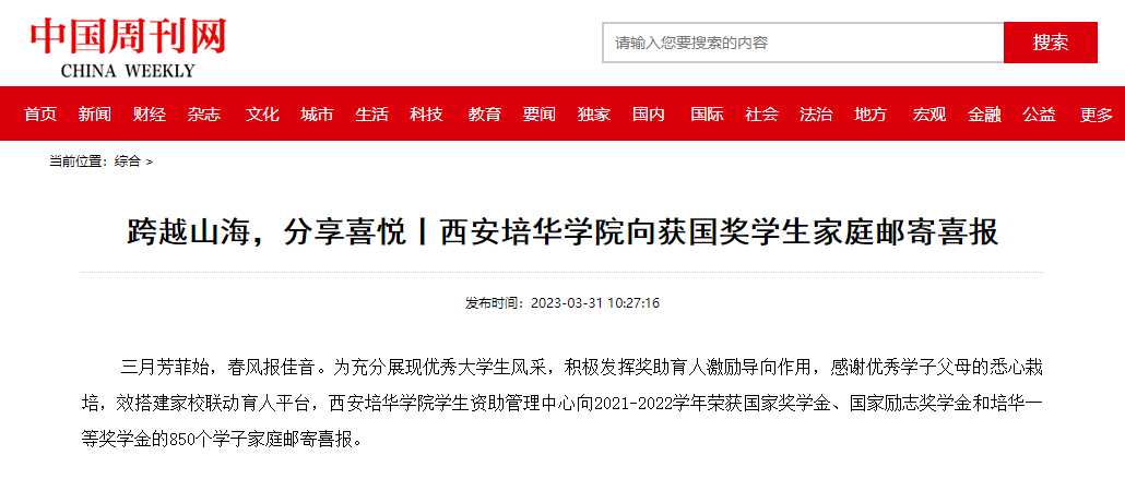 中国周刊网:跨越山海,分享喜悦丨西安培华学院向获国奖学生家庭邮寄喜报