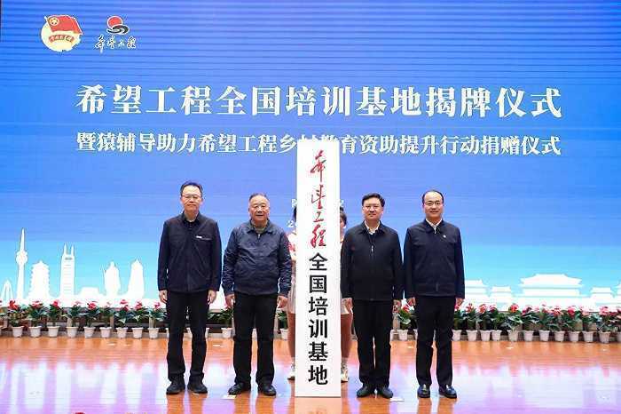 大会上,由陕西省十届人大常委会原副主任邓理,中国青少年发展基金会党委书记、理事长郭美荐,共青团陕西省委书记、省青联主席徐永胜,西安培华学院理事长姜波共同为希望工程全国培训基地揭牌。