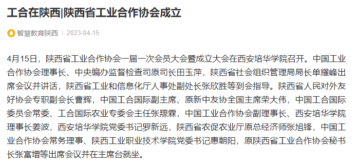 腾讯新闻:工合在陕西|陕西省工业合作协会成立