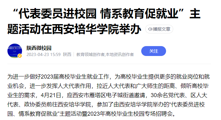 陕西微校园:“代表委员进校园 情系教育促就业”主题活动在西安培华学院举办